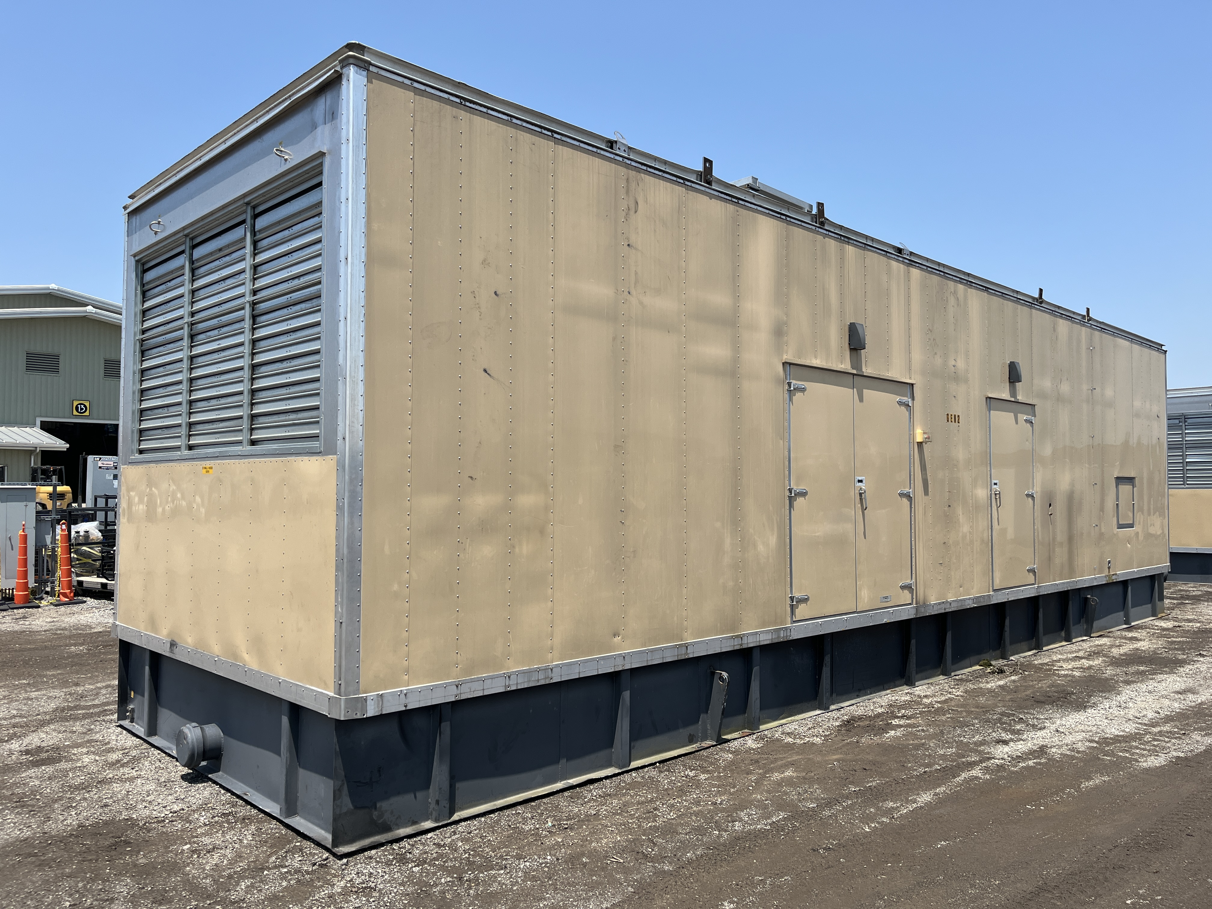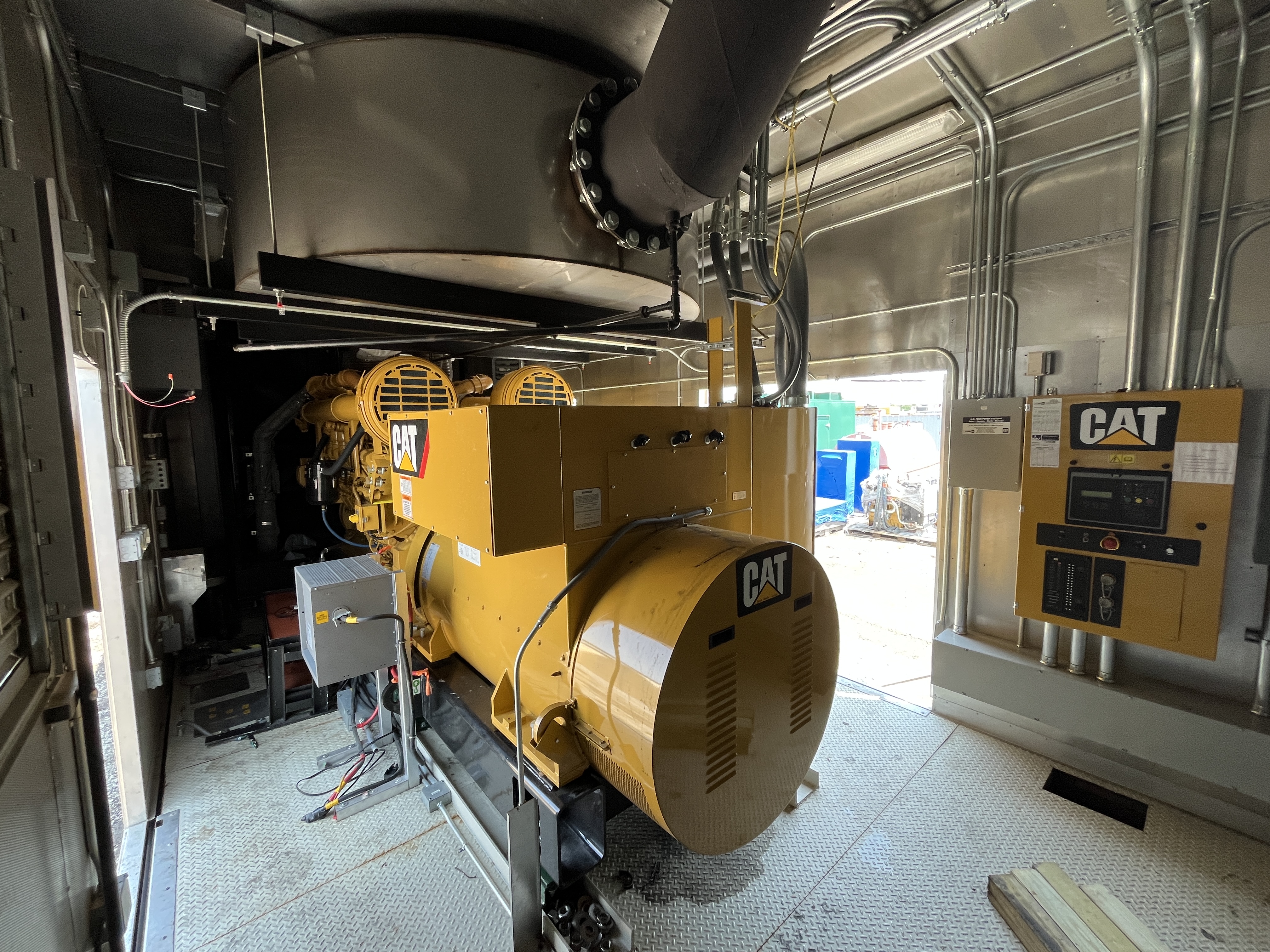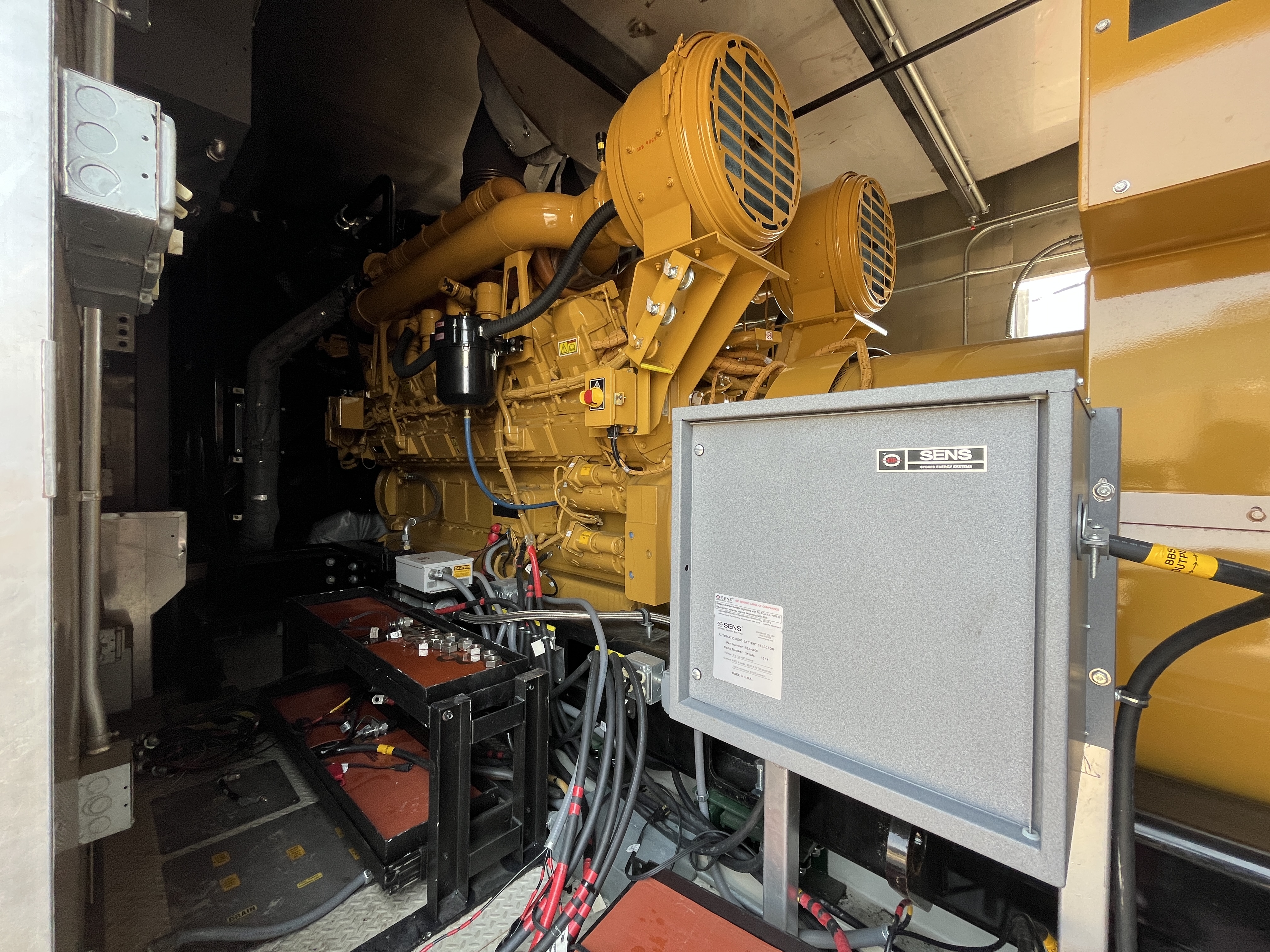 - DESCRIPTION: 2014 Caterpillar 3516C-HD Generator Set S#SEK00525, 2500kW Standby, 13,800V (6-Lead), Adjustable to 13,200V &12,470V, 60Hz, 1800RPM, CAT 3516C-HD Diesel Engine, 165 Hours, EPA Stationary Tier 2 Emissions Rated, 240VAC Jacket Water Heater, Engine-Driven Radiator, Pancake-Style Muffler System, Air Cleaners, EMCP 4.2 Digital Control Panel, CAT ADEM3 Electronic Governor, (3) 24V Electric Starters, Best Battery Starting System, 45A Charging Alternator, (3) Battery Chargers, Sound-Attenuated Enclosure Upon a 6500 Gallon Sub-Base Fuel Tank. SERVICE WORK: Generator Set Will Be Serviced and Load Tested to 100% Capacity. SHIPPING DIMENSIONS: L – 540” W – 150” H – 172” Weight: 100,000 lbs. Separated Dimensions: Enclosure: L – 540” W – 143” H – 140” Weight: 30,000 lbs. Gen/Tank: L – 540” W – 150” H – 158” Weight: 70,000 lbs. Ship Loose Items: Plenums Exhaust Stack
