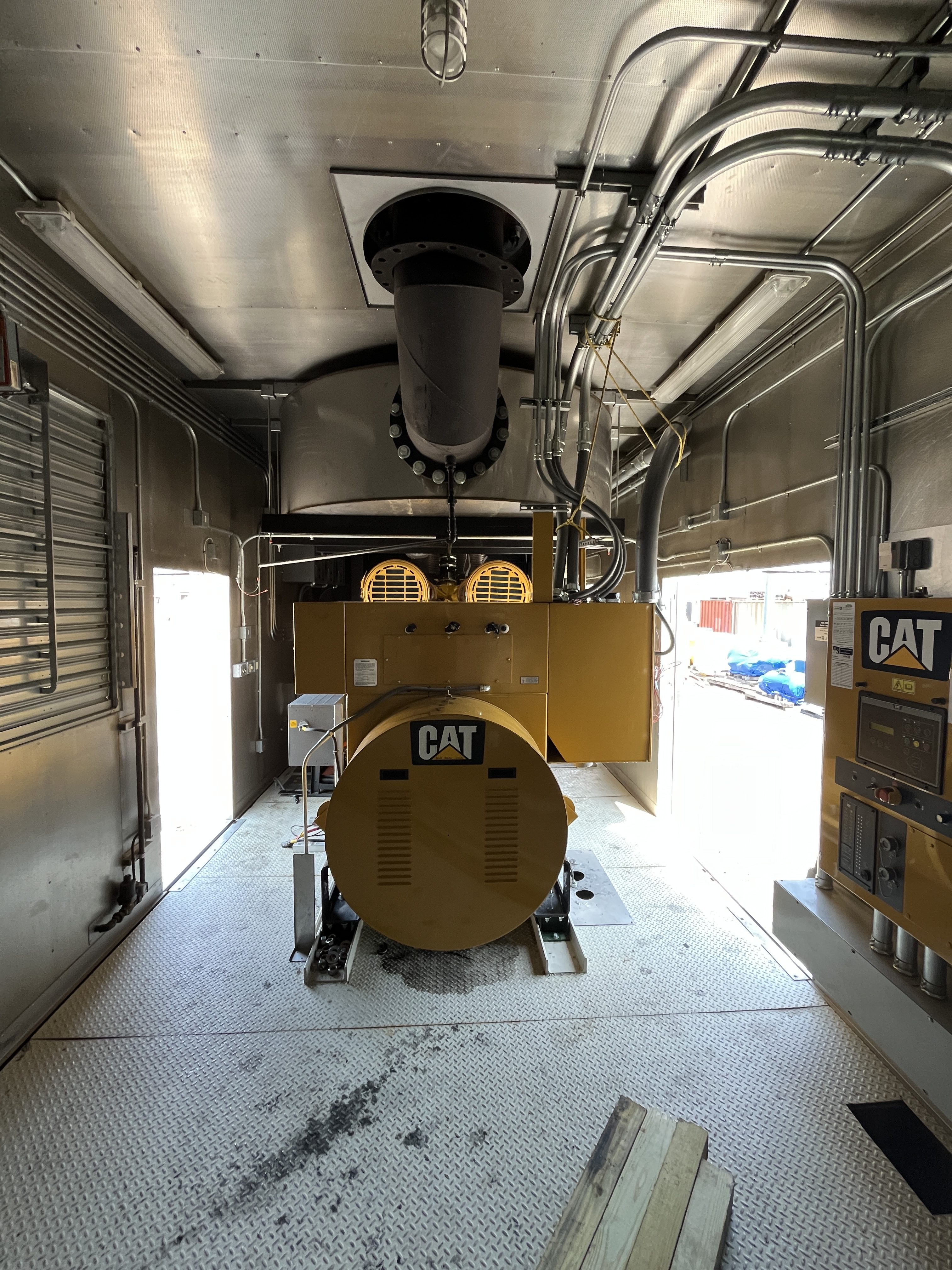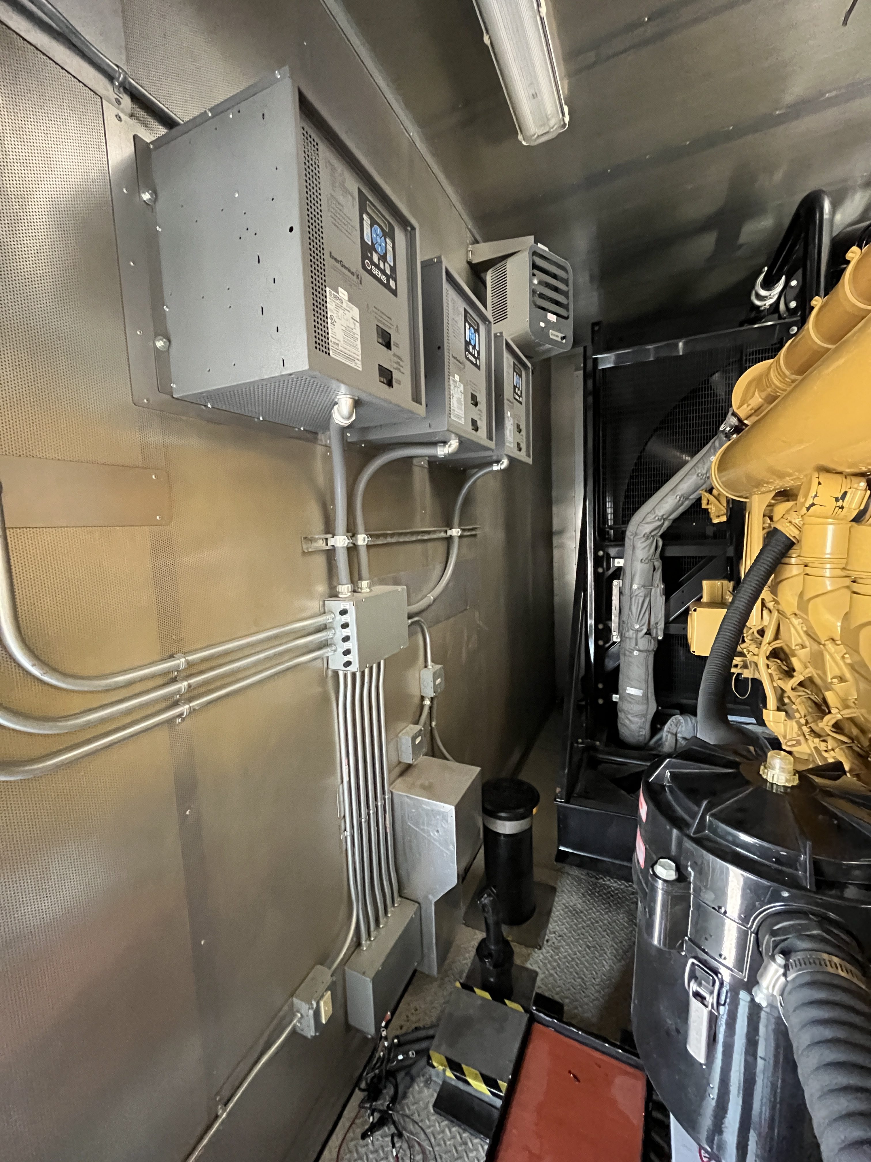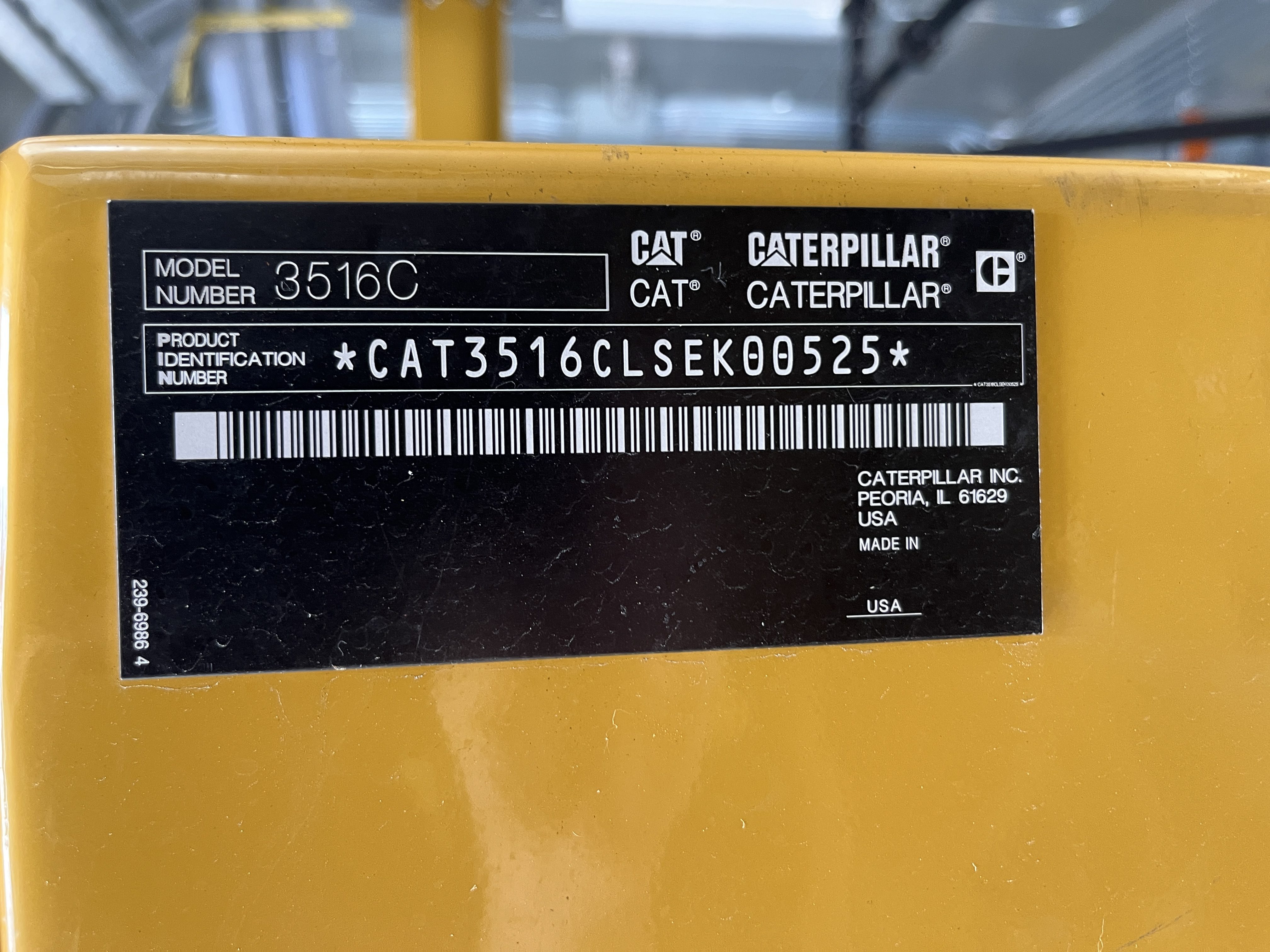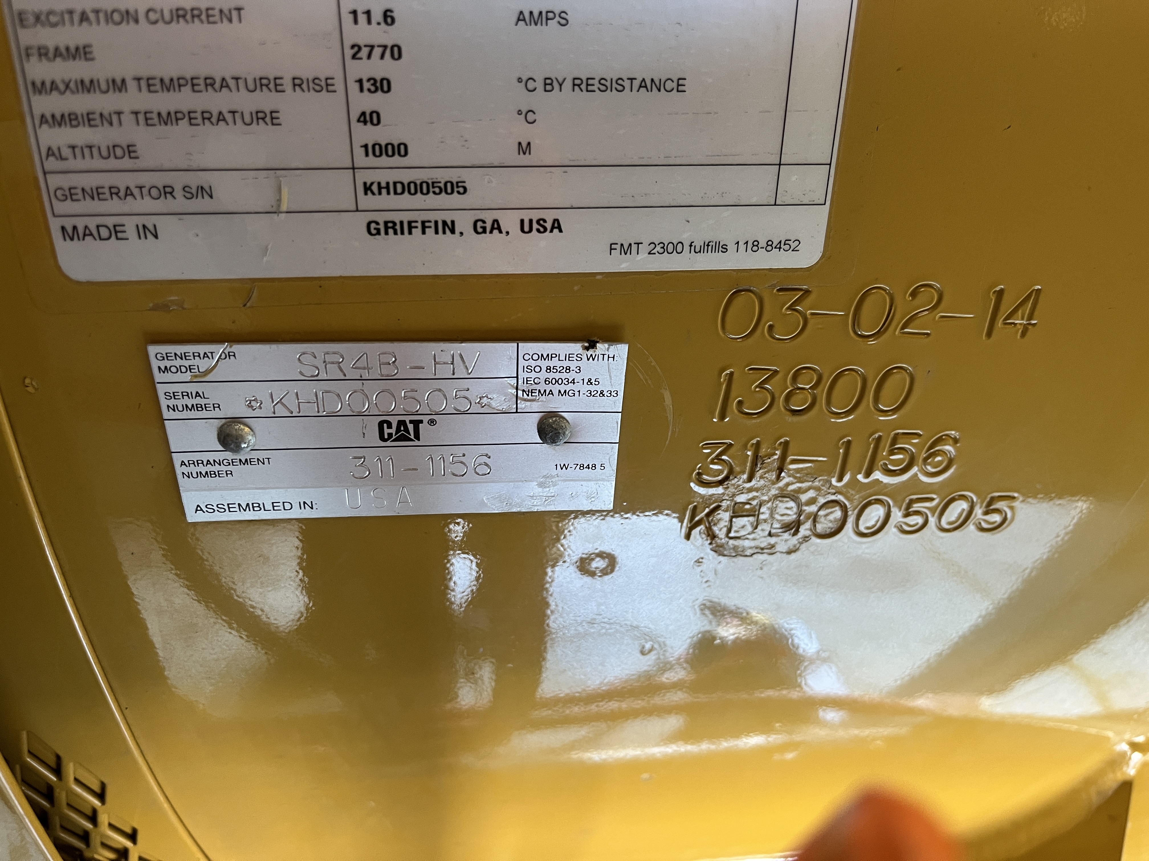 - DESCRIPTION: 2014 Caterpillar 3516C-HD Generator Set S#SEK00525, 2500kW Standby, 13,800V (6-Lead), Adjustable to 13,200V &12,470V, 60Hz, 1800RPM, CAT 3516C-HD Diesel Engine, 165 Hours, EPA Stationary Tier 2 Emissions Rated, 240VAC Jacket Water Heater, Engine-Driven Radiator, Pancake-Style Muffler System, Air Cleaners, EMCP 4.2 Digital Control Panel, CAT ADEM3 Electronic Governor, (3) 24V Electric Starters, Best Battery Starting System, 45A Charging Alternator, (3) Battery Chargers, Sound-Attenuated Enclosure Upon a 6500 Gallon Sub-Base Fuel Tank. SERVICE WORK: Generator Set Will Be Serviced and Load Tested to 100% Capacity. SHIPPING DIMENSIONS: L – 540” W – 150” H – 172” Weight: 100,000 lbs. Separated Dimensions: Enclosure: L – 540” W – 143” H – 140” Weight: 30,000 lbs. Gen/Tank: L – 540” W – 150” H – 158” Weight: 70,000 lbs. Ship Loose Items: Plenums Exhaust Stack